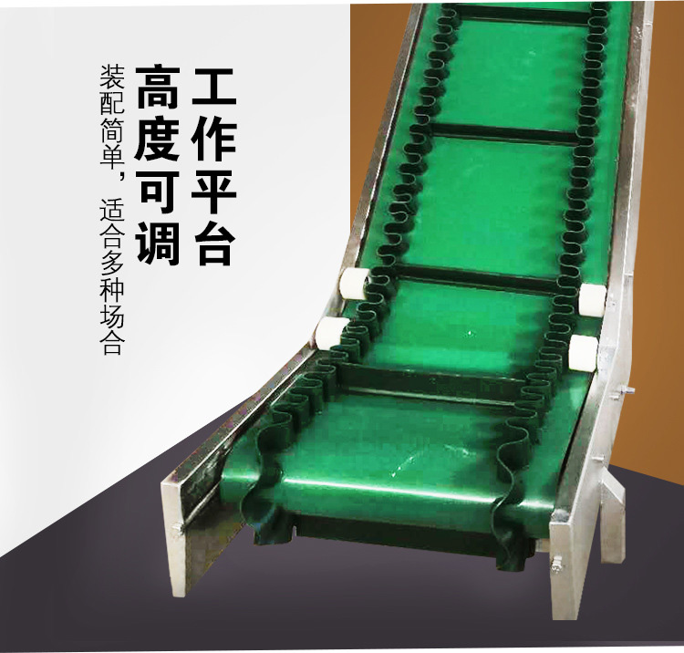 裙邊皮帶輸送機(jī)是在平形橡膠運(yùn)輸帶兩側(cè)粘上可自由伸縮的橡膠波形立式"裙邊",在裙邊之間又粘有一定強(qiáng)度和彈性的橫隔板組成匣形斗,對(duì)物料進(jìn)行連續(xù)輸送的設(shè)備。可大傾角輸送甚至垂直提升散料。